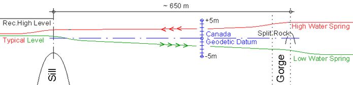 Die zwischen der Gorge und dem direkt an der Fundybay liegenden St. John Harbour (Distanz etwa 2 km) sich einstellenden kleinen Pegelunterschiede werden vernachlässigt.